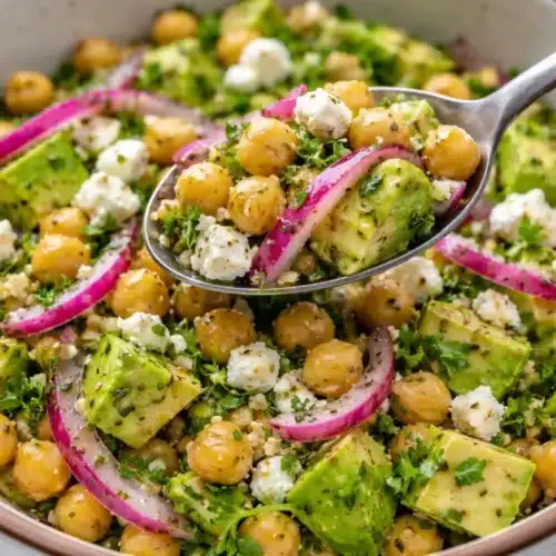 A vibrant and refreshing salad that combines creamy avocado, briny feta, and protein-packed chickpeas for a perfect dish that's quick, healthy, and delicious.