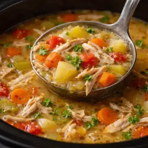 The chill in the air calls for something warm and nourishing to cozy up to. It’s that time of year when we seek solace in hearty meals, and there’s nothing quite like a soul-soothing soup to bring everyone together. Homemade Comfort Soup is more than just nourishment; it’s an embrace on a chilly day. The fragrant blend of vegetables simmering away in a slow cooker creates an aroma that transforms your kitchen into a warm haven.