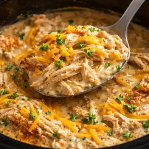 Shred the Chicken: Once cooked, use two forks to shred the chicken in the crock pot and stir it into the creamy sauce.