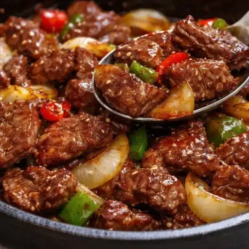 The aroma of sizzling beef wafting through the kitchen has always held a special place in my heart. It’s like a warm embrace that wraps around me, reminding me of family dinners and the joy of gathering around the table. As I prepare this delightful dish, memories of laughter and good conversation fill my mind. Whether it’s a weeknight meal or a weekend feast, Sizzling Chinese Pepper Steak with Onions is more than just food; it’s a celebration of flavors and love. The tender beef combined with vibrant onions and a rich sauce creates a symphony of taste that will leave your family asking for seconds. This recipe not only brings comfort but also the convenience of a quick meal that feels indulgent without the hassle.