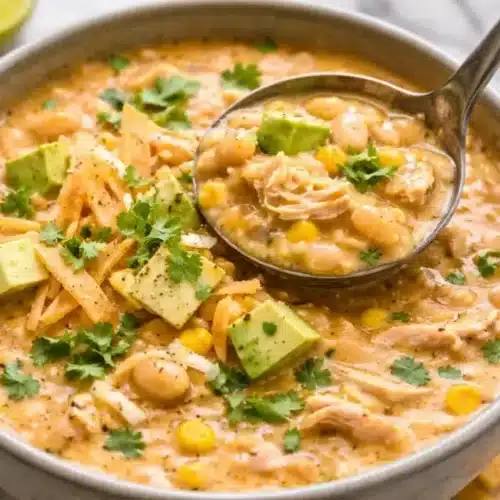 This White Chicken Chili is a revelation of flavors, combining hearty chicken with the zesty kick of green chilies. Each ingredient plays a part in creating a cozy, rich dish that satisfies the soul and the stomach. The beauty of this recipe is not just in its taste, but in its practicality. It’s a one-pot wonder that doesn’t require an extensive prep time, making it perfect for busy weeknights.
